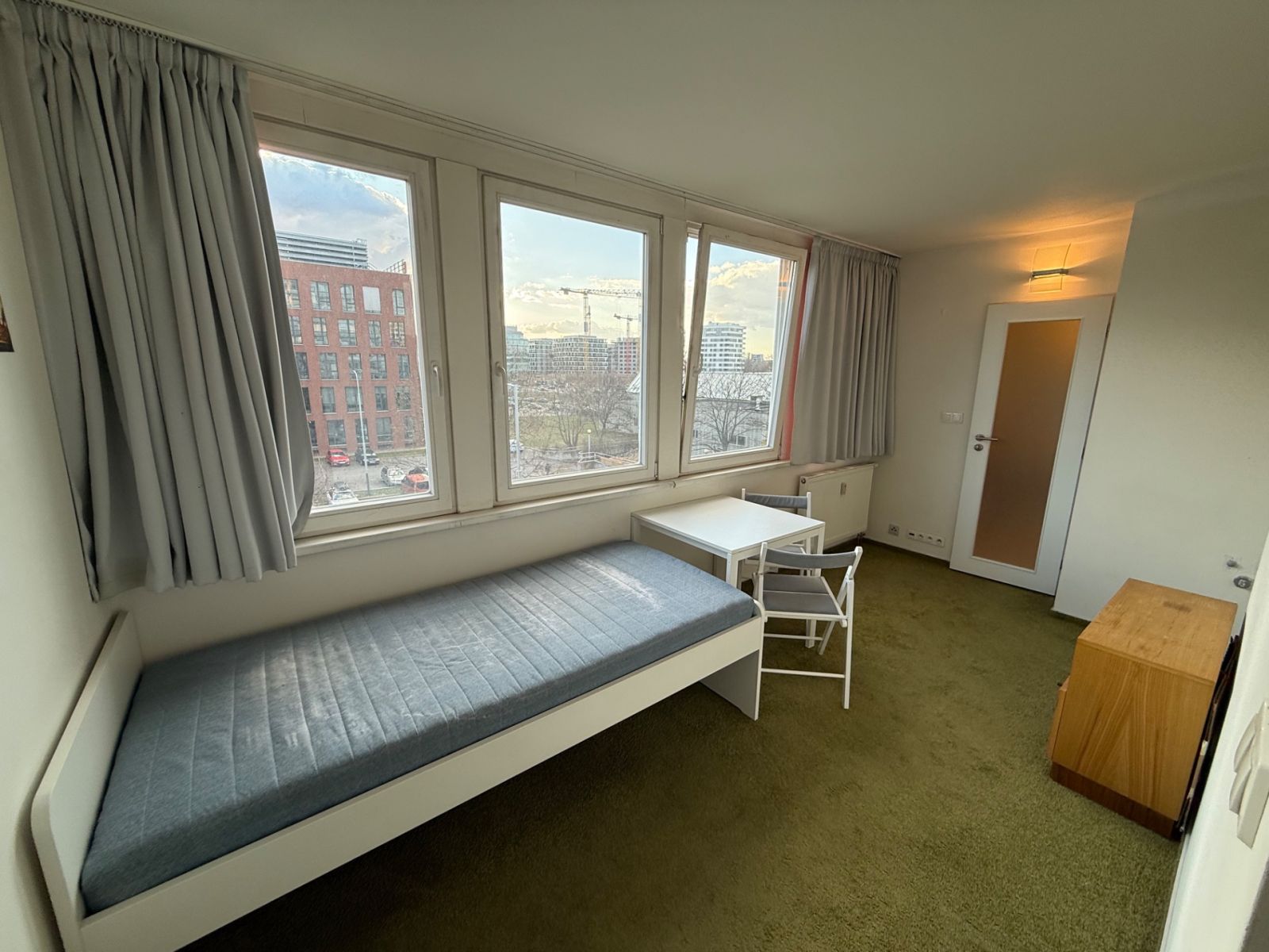 Nabízím malý, ale moderní prostor o 16 m² s vlastní novou koupelnou s WC v těsné blízkosti metra B Invalidovna se základním vybavením postelí s pružinou matrací IKEA, jídelním stolem a se 2 židlemi. V domě je k dispozici několik praček a sušiček (za poplatek) posilovna (bezplatně) a spoluužívání velké střešní terasy se sezením a místy pro relax nebo opalování. K prostoru patří sklep na patře.