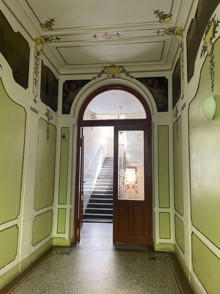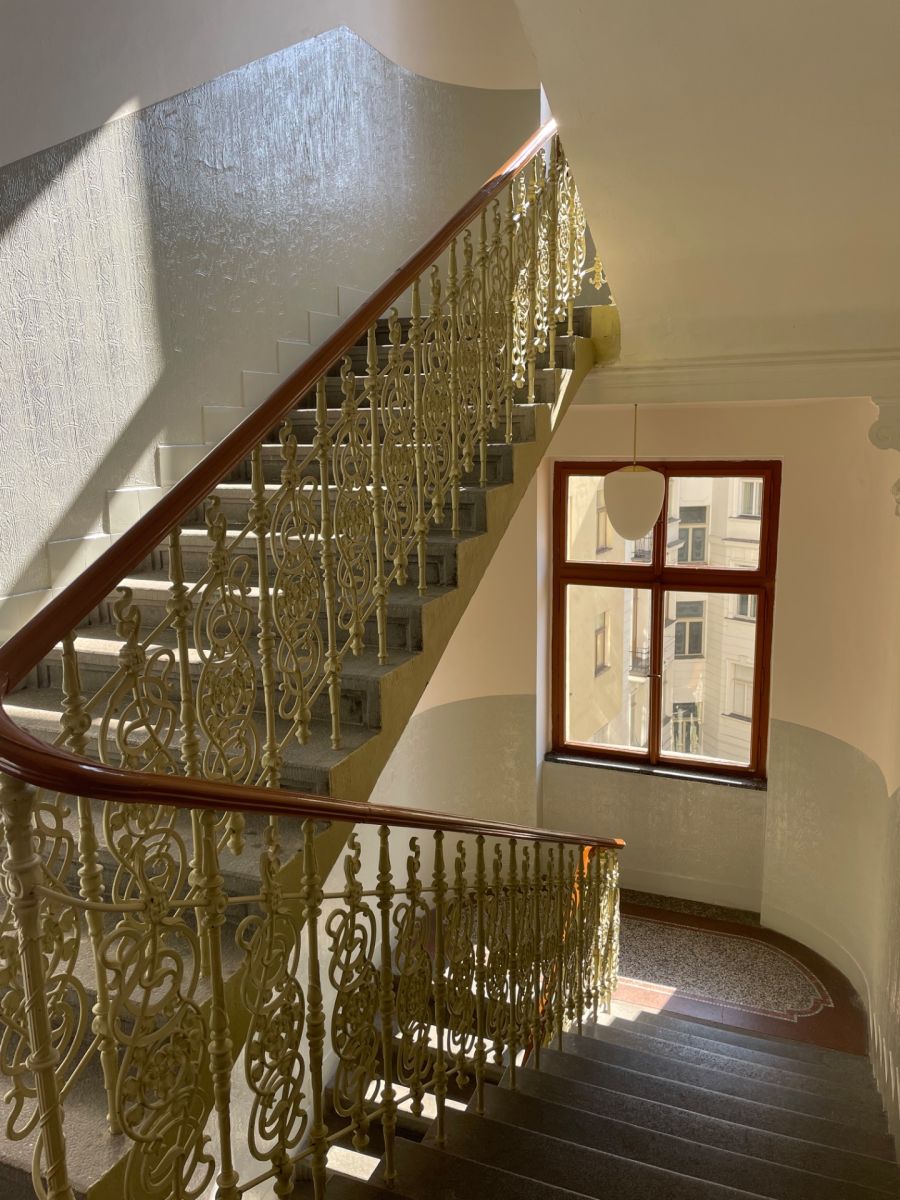We offer for rent a 2+1 apartment in Prague 1, approx. 72m2 on the 4th floor of a historical house in V Kolkovně street, 200 m from the Old Town Square. The house is decorated with frescoes by the painter Adolf Liebscher from the early 20th century and is located on a street frequently visited by tourists, with bars, restaurants, cafes and shops. The place has generous civic and social amenities (historical monuments, churches, Jewish town with synagogues, museums, kindergartens, schools, hospitals,...). The apartment is heated by an electric boiler. The electricity meter is transferred to the tenant. Parking is possible around the house within the blue residential zones. Bus stop 120 m, Staroměstská metro station 500 m. The apartment has parquet and tiles. There is a large separate kitchen, 2 rooms, a hall, a bathroom with bathtub and a toilet. The rental is 29,900 CZK + service deposit 800 CZK/person/month. (Security deposit 40,000 czk is due to the conclusion of the contract. ) Suitable as a studio or company apartment. The house has no elevator with a maximum of 2 apartments per floor.