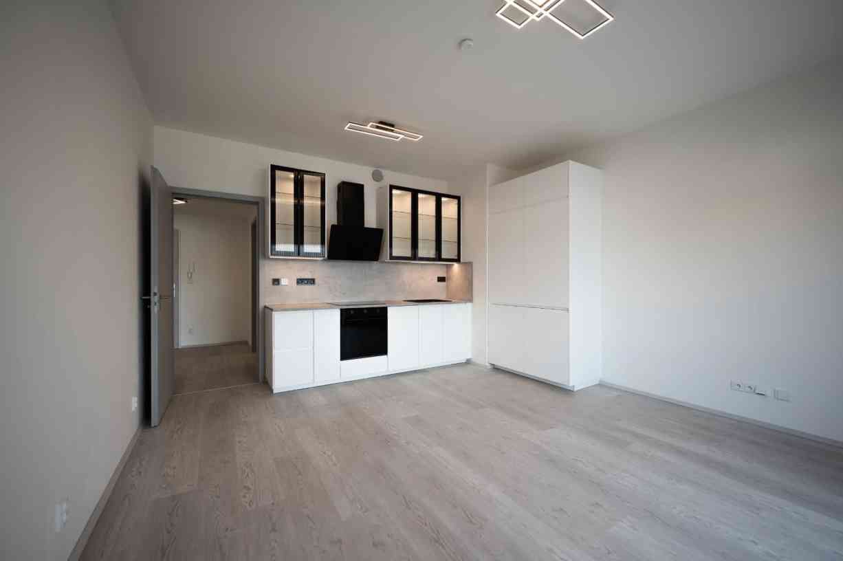 I am offering an attractive 2+kk apartment for rent in a brick building, located on the 8th floor of an eight-story structure equipped with an elevator. The apartment, with a total area of 80 m², is in very good condition and its layout provides a spacious living area connected to a kitchenette, offering the opportunity to create a cozy home tailored to your preferences.
