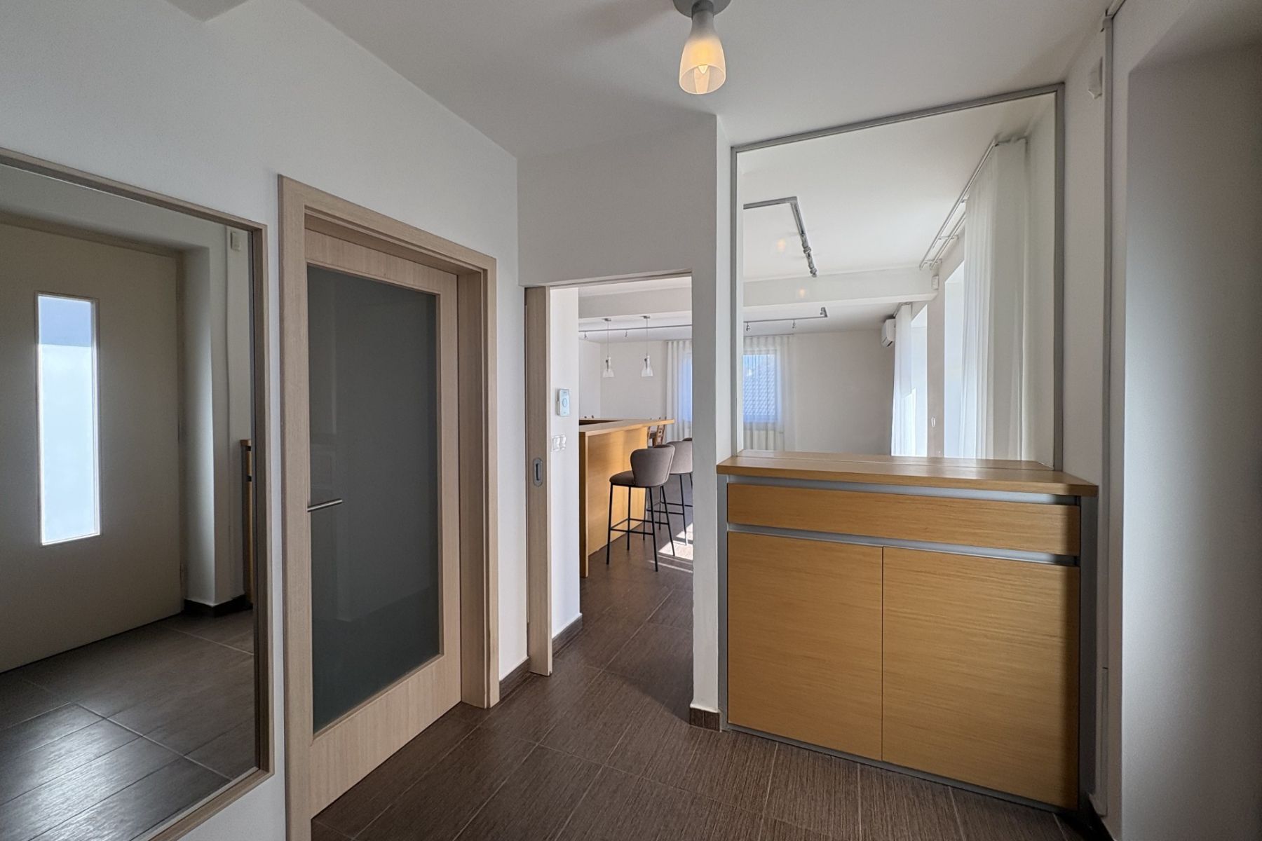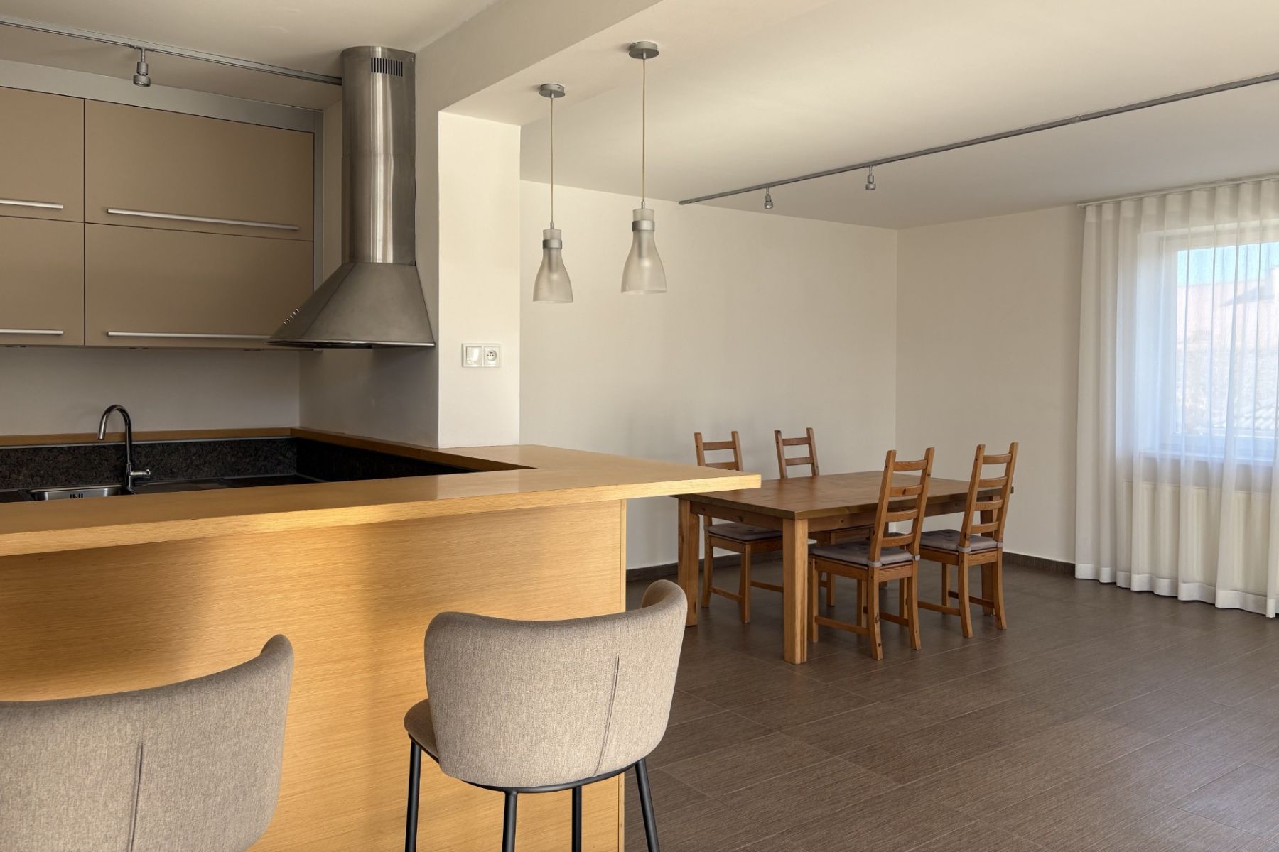 Budete tady mít dostatek prostoru – velký obývací pokoj s hezkým výhledem (s klimatizací), propojený s terasou pro posezení po práci, kuchyň vybavenou pro velké rodinné vaření, dvě koupelny, velkou ložnici a dva dětské pokoje. Pro práci na home office je zde místa víc než dost.