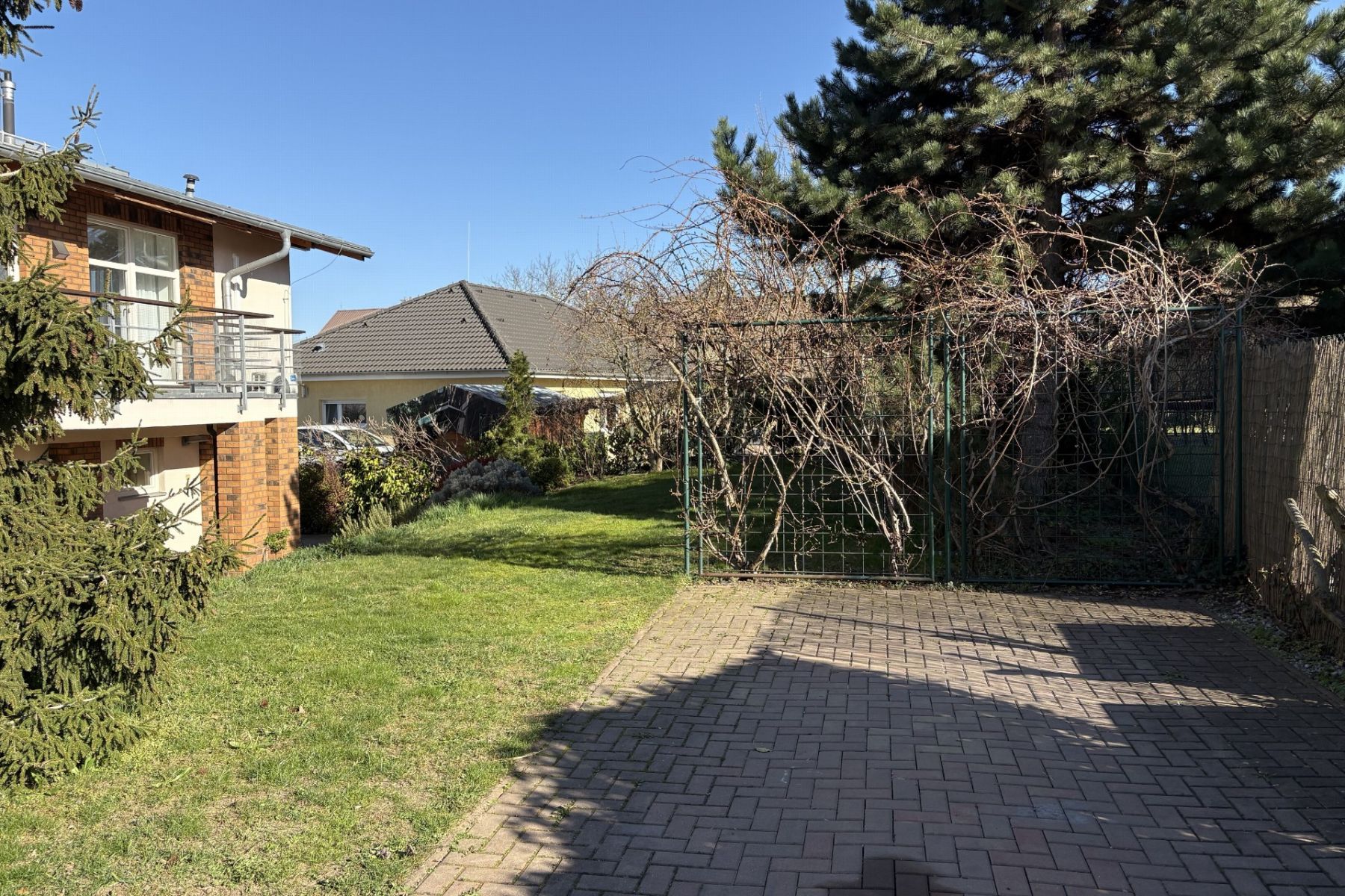 Byt se nachází v malém domě v klidné ulici - se zahradou, kde si budou Vaše děti moct bezpečně hrát.