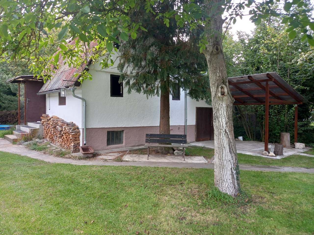Lysá nad Labem - Lysá nad Labem, Středočeský RegionPronájem Chaty Byšičky v oblasti Střední Čechy: 3 ložnice, celkem pro 4 až 9 osob.chata za týden: léto 16.000kč, zima 14.000kč. Chata z 80 let, větší oplocená zahrada, u potoka, na cyklostezce, cyklistika bez aut, rovinatý terén, les louky, Labe, Jizera, venkovní bazén 4m, horká venkovní retro vana, ohniště dřevo k dispozici, 4x gril, prostor pro děti, trávník na míčové hry, spaní - ložnice pro 2 osoby přízemí, ložnice pro 2 osoby podkroví, ložnice pro 4 osoby podkroví - snížený strop, koupelna - sprchový kout vstup zvenku v přístavbě, solární sprcha u bazénu na terase, pergola s grilem a udírnou, letní kuchyňka u ohniště. Parkování na zahradě, nabíjení 400V. Restaurace s jídlem 1km. Koupání řeka Labe 1km. Zásobený vinný sklep.