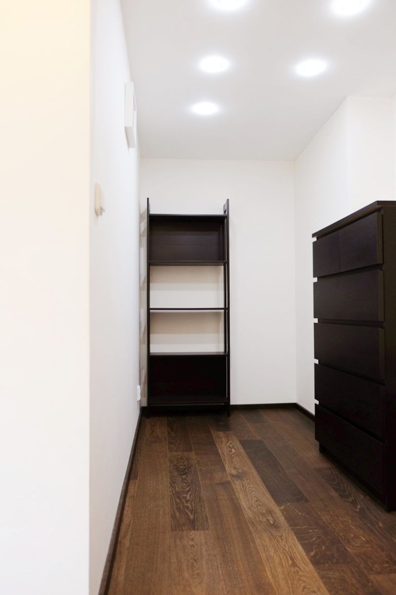 LED lighting is installed throughout the apartment, enhancing its modern and luxurious character.