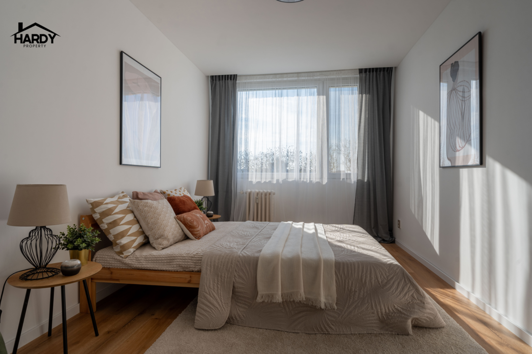 Byt je orientován na západ, což zajišťuje dostatek přirozeného světla po celý den. Okna směřují do parku, díky čemuž je byt velmi klidný a nabízí příjemný výhled do zeleně. Dispozice bytu zahrnuje obývací pokoj s kuchyňským koutem, samostatnou ložnici, koupelnu se sprchovým koutem a vstupní chodbu s prostorem pro úložná řešení. K bytu náleží také sklepní kóje.