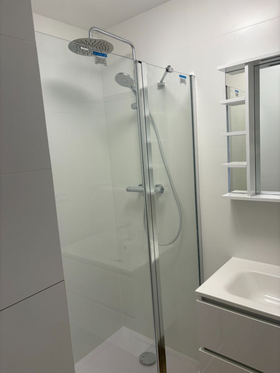 Kuchyně je vybavena varnou deskou, troubou, digestoří, myčkou a disponuje malou špízkou. Koupelna má prostorný sprchový kout.