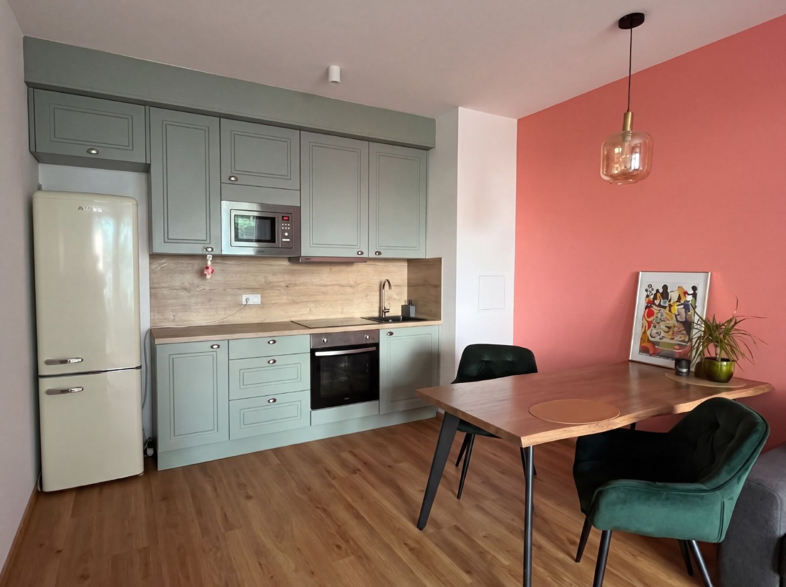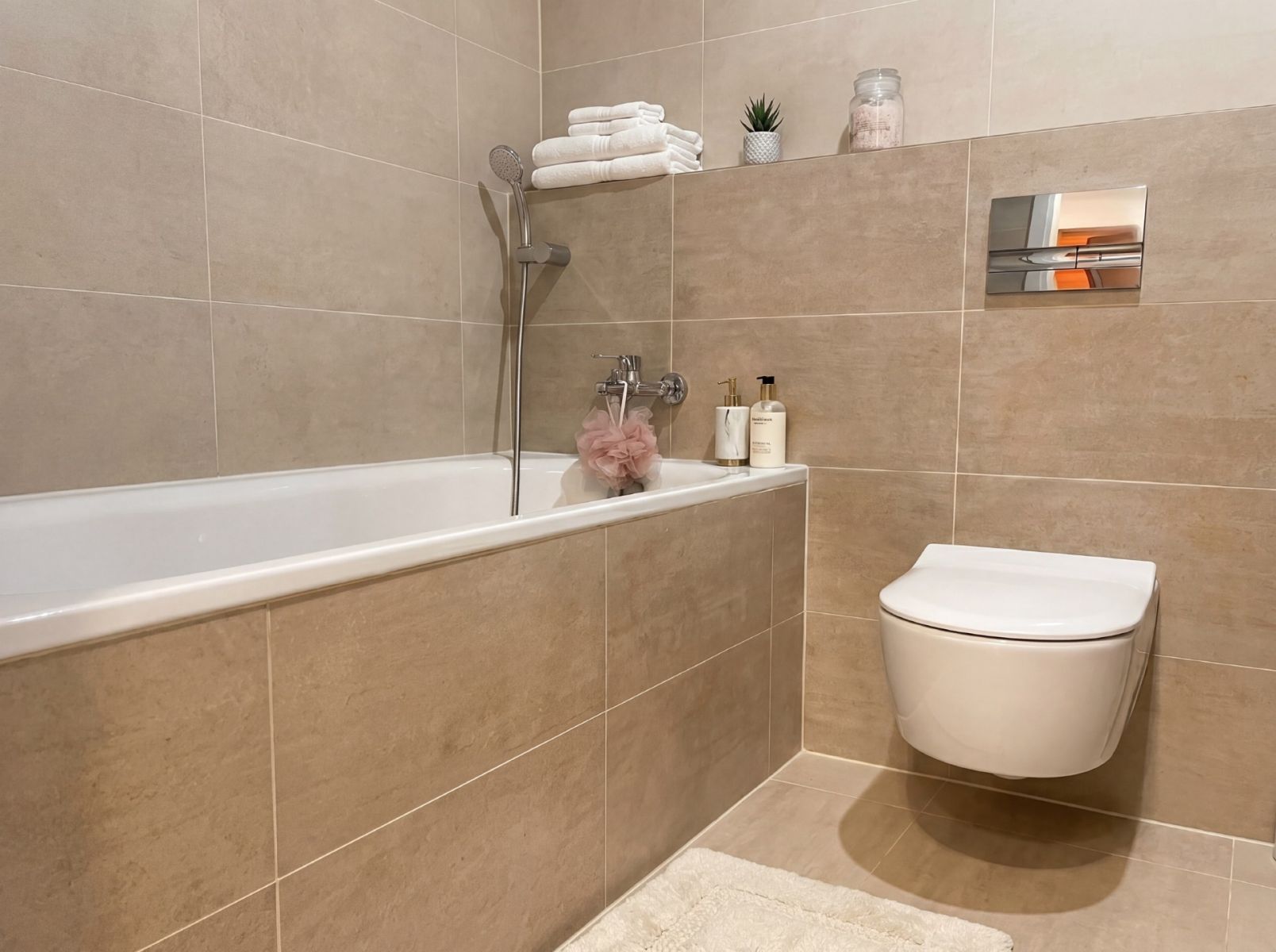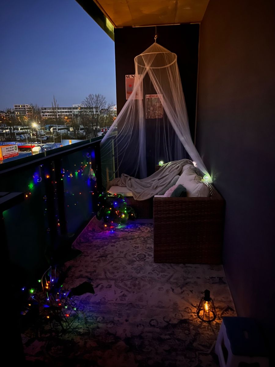 Fully furnished, no ikea, custom build two large wardrobes, lots of space, very big 20m balcony with 2 chill out zones. Big TV, washing machine, microwave, oven, dedicated work space, bathtub