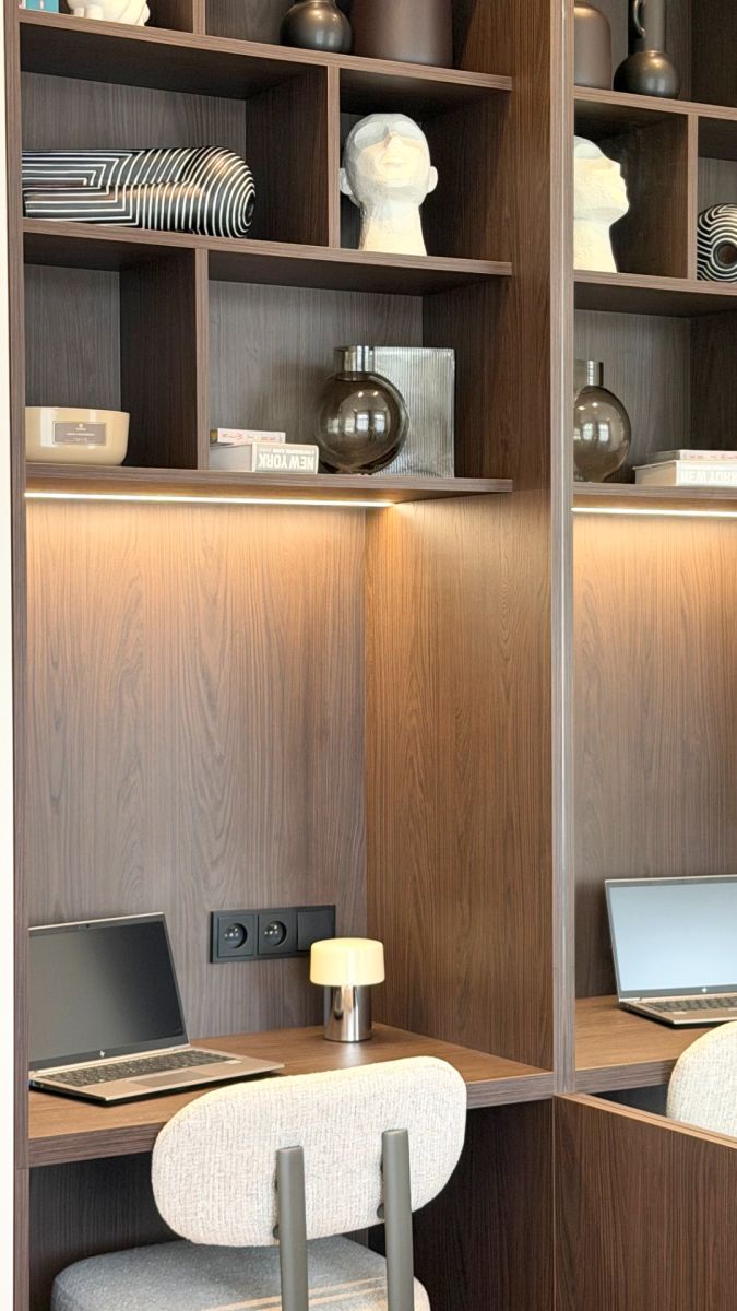 Interiér je kompletně zařízen nábytkem na míru doplněným o designové prvky. Byt nabízí dostatek úložných prostor i komfortní zázemí pro práci z domova. Celý prostor působí velmi čistě, klidně a nadčasově – ideální jako komfortní zázemí uprostřed města. Součástí vybavení je také pračka a v obývacím prostoru Smart TV.