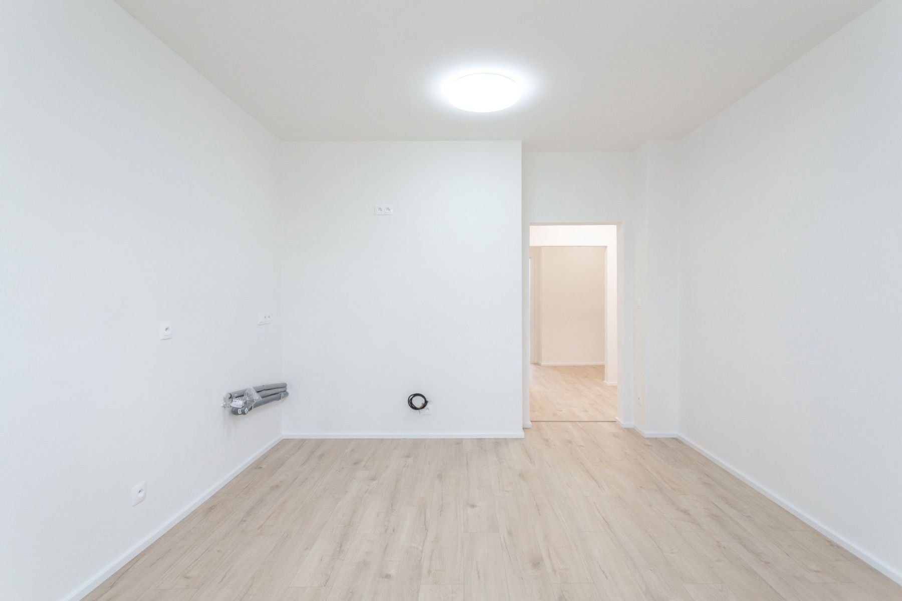 obývací pokoj s přípravou pro kuchyňskou linku