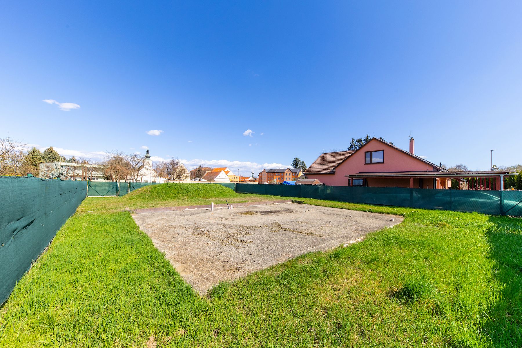 Šířka pozemku je 19 m. Podle územního plánu je možné využít pozemek jako stavební. V inzerci je použit náhled na studii rodinného domu, který lze na pozemku postavit. Příjezd je z přilehlá silnice, inženýrské sítě jsou na vedeny již na pozemku. Jedná se o krásný rovinatý pozemek, v klidné části obce, na kterém je možné ihned stavět. Stavební povolení není vyřízeno. Na pozemku je původní základová deska, její stav je potřeba nechat prověřit odborníkem. Pozemek je oplocen a v plotě je i uzamykatelná brána. Další informace získáte u našeho realitního specialisty.