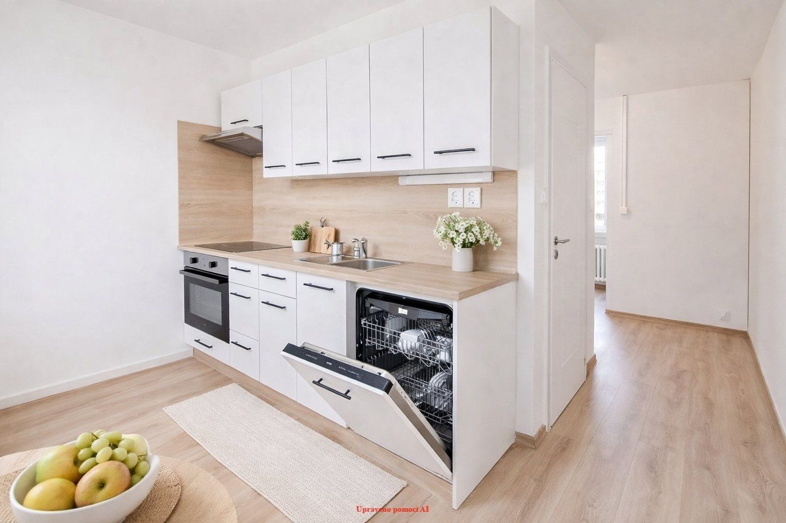 Kuchyně bude splňovat nároky i těch nejnáročnějších, a to díky moderní kuchyňské lince s vestavěnými spotřebiči a myčkou.