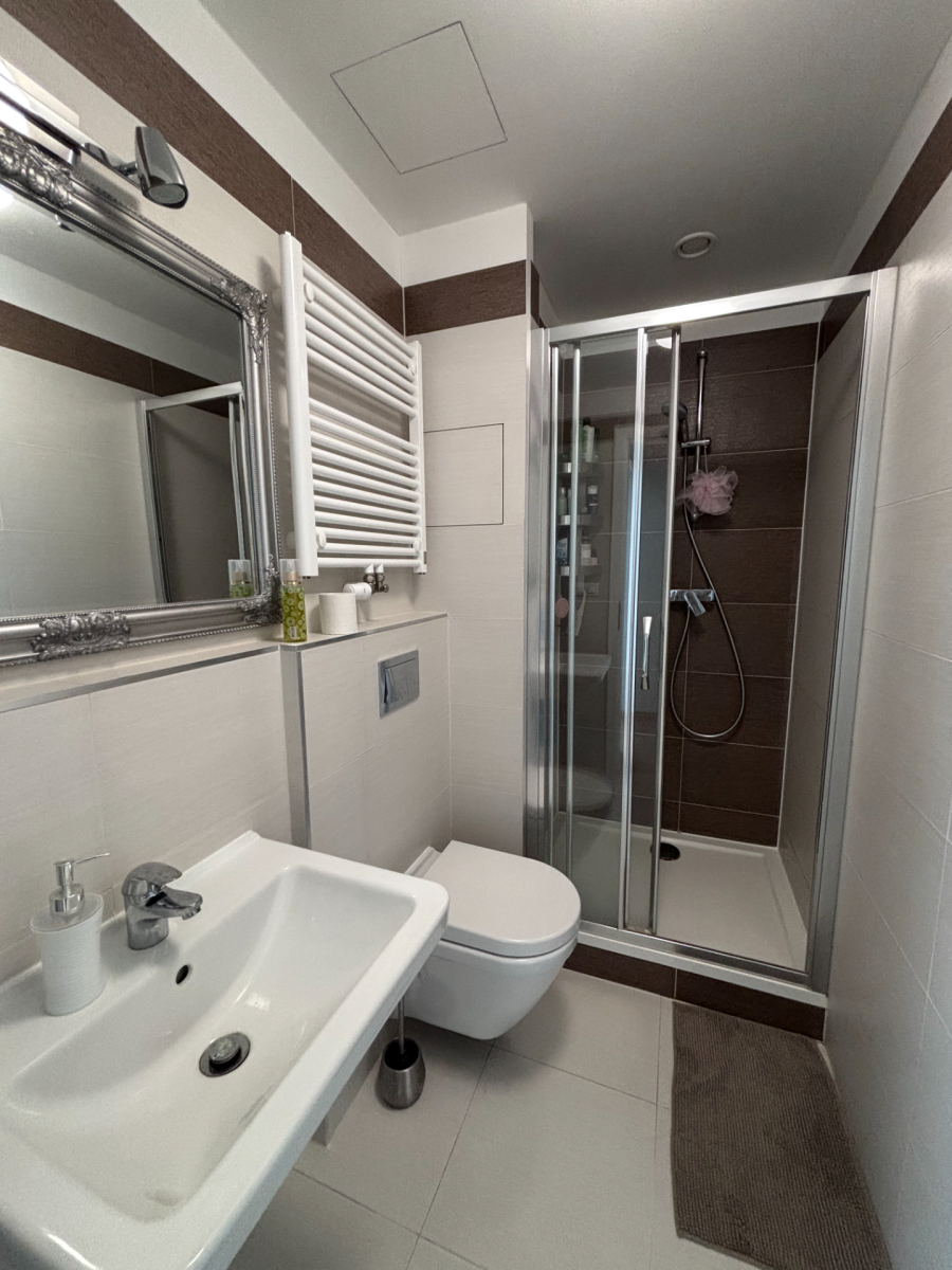 Byt je vzdušný a příjemný, má promyšlenou dispozici a je plně vybavený, takže stačí jen přijít a bydlet. Velkým benefitem pro komfortní bydlení je samostatná koupelna s vanou a oddělená sprcha v druhé místnosti. V případě, že preferujete vlastní nábytek, je možné se domluvit na úpravě. Ideální pro rodinu, pár i pro ty, kteří si chtějí dopřát víc prostoru a pohodlí.