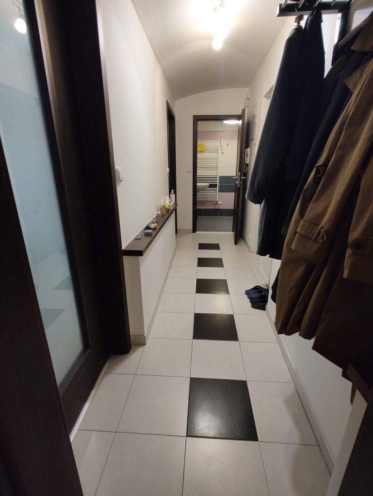 Dispozici bytu tvoří obývací pokoj s kuchyňskou linkou, ložnice, koupelna se sprchovým koutem a WC, vstupní chodba a komora. Byt je pronajímaný jako částečně zařízený. K. dispozici je sklep.