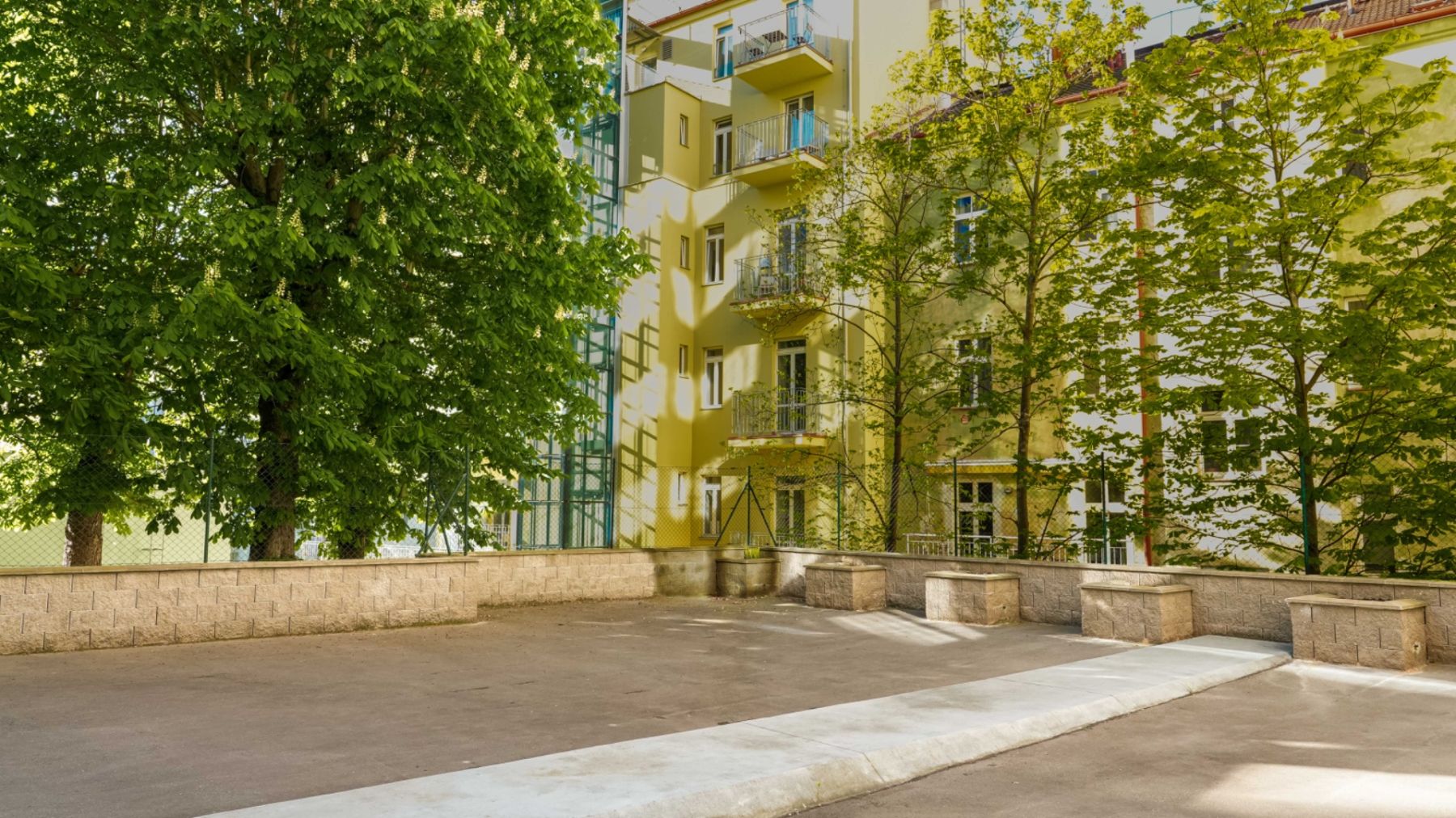 Okna vedou do klidného vnitrobloku. Zastávka tramvaje je doslova pár kroků od domu, na I. P. Pavlova se dostanete MHD za 8 minut.