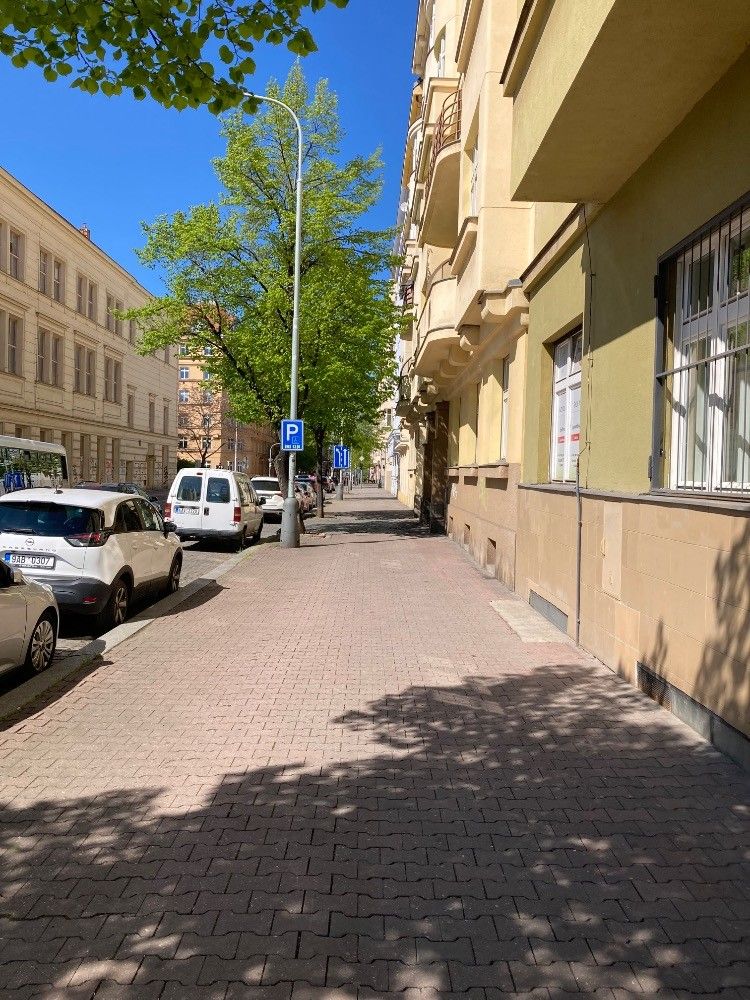 The apartment is located on the 2nd floor of a brick building with an elevator, in a prestigious area of Prague 3 – Vinohrady, on Boleslavská Street.