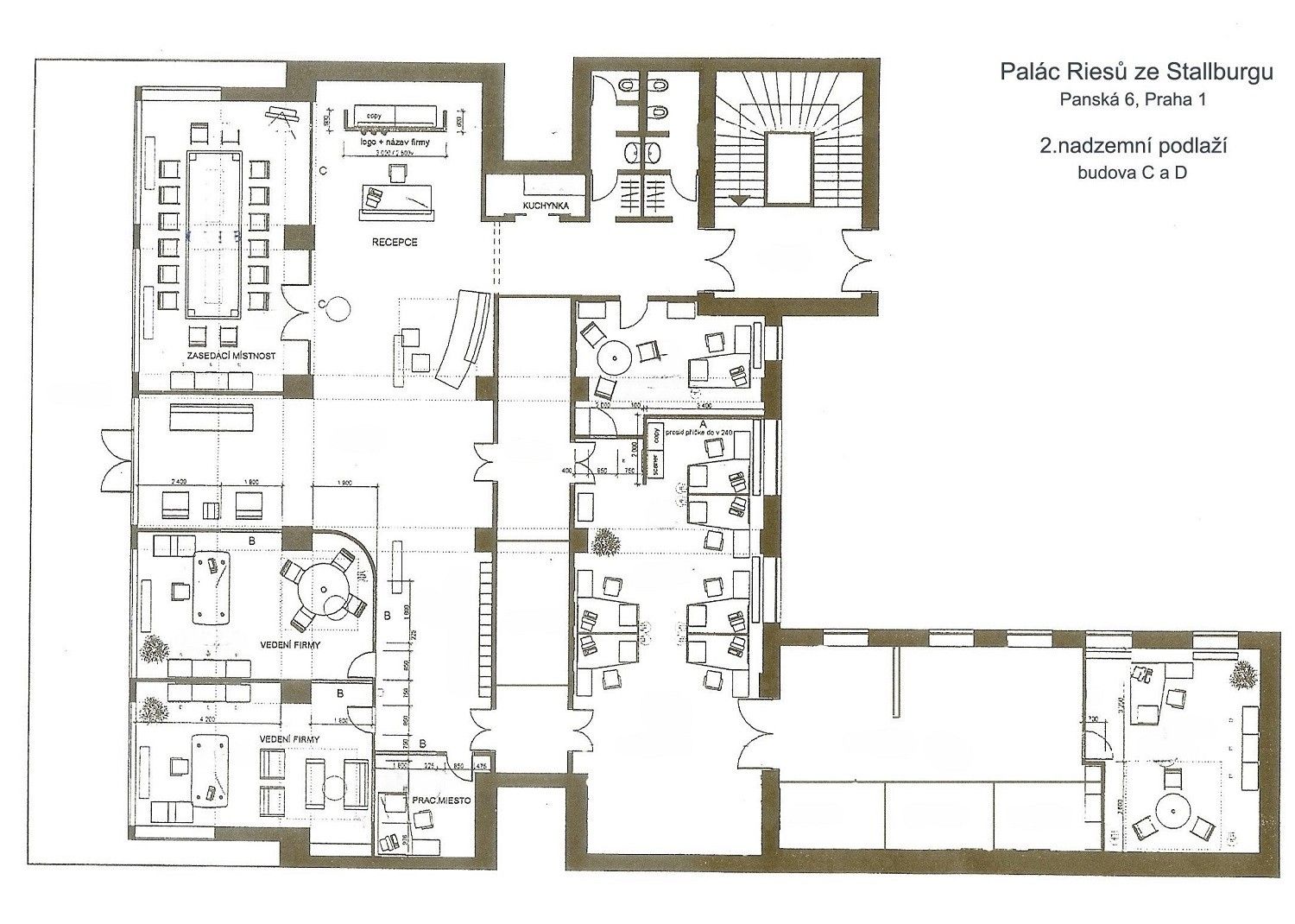 Pokud jste střední až větší firma a hledáte prostory s reprezentativním vzhledem i prestižní adresou, které Vám poskytnou pohodlí i soukromí v samém centru Prahy, neváhejte nám napsat nebo zavolat.