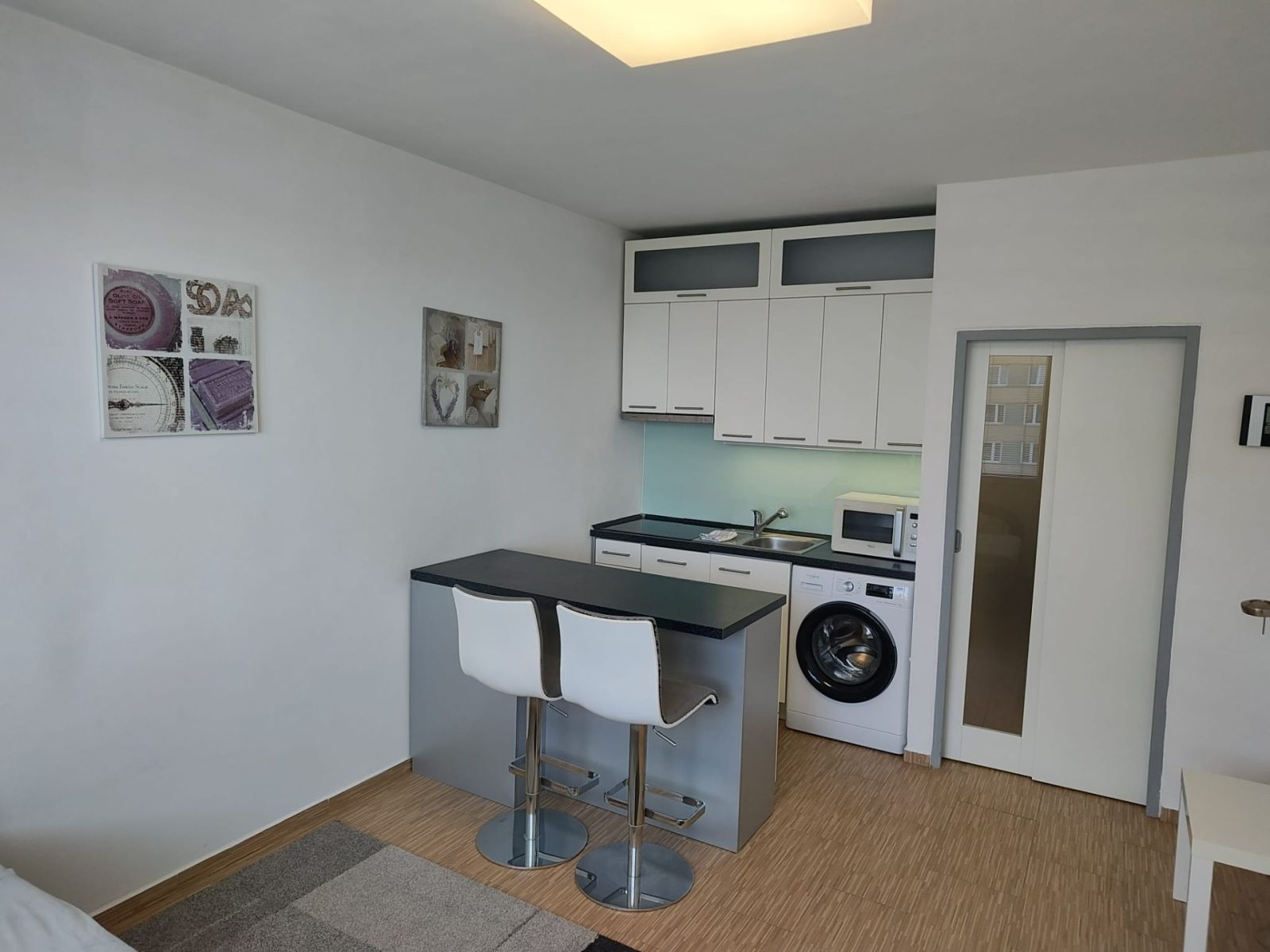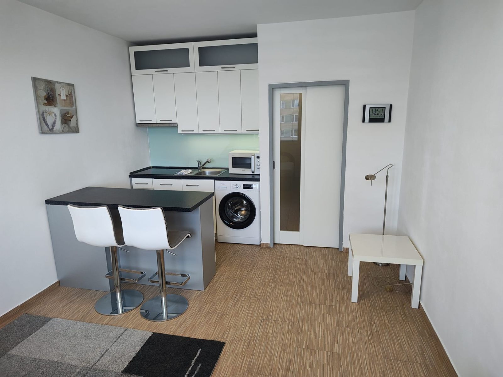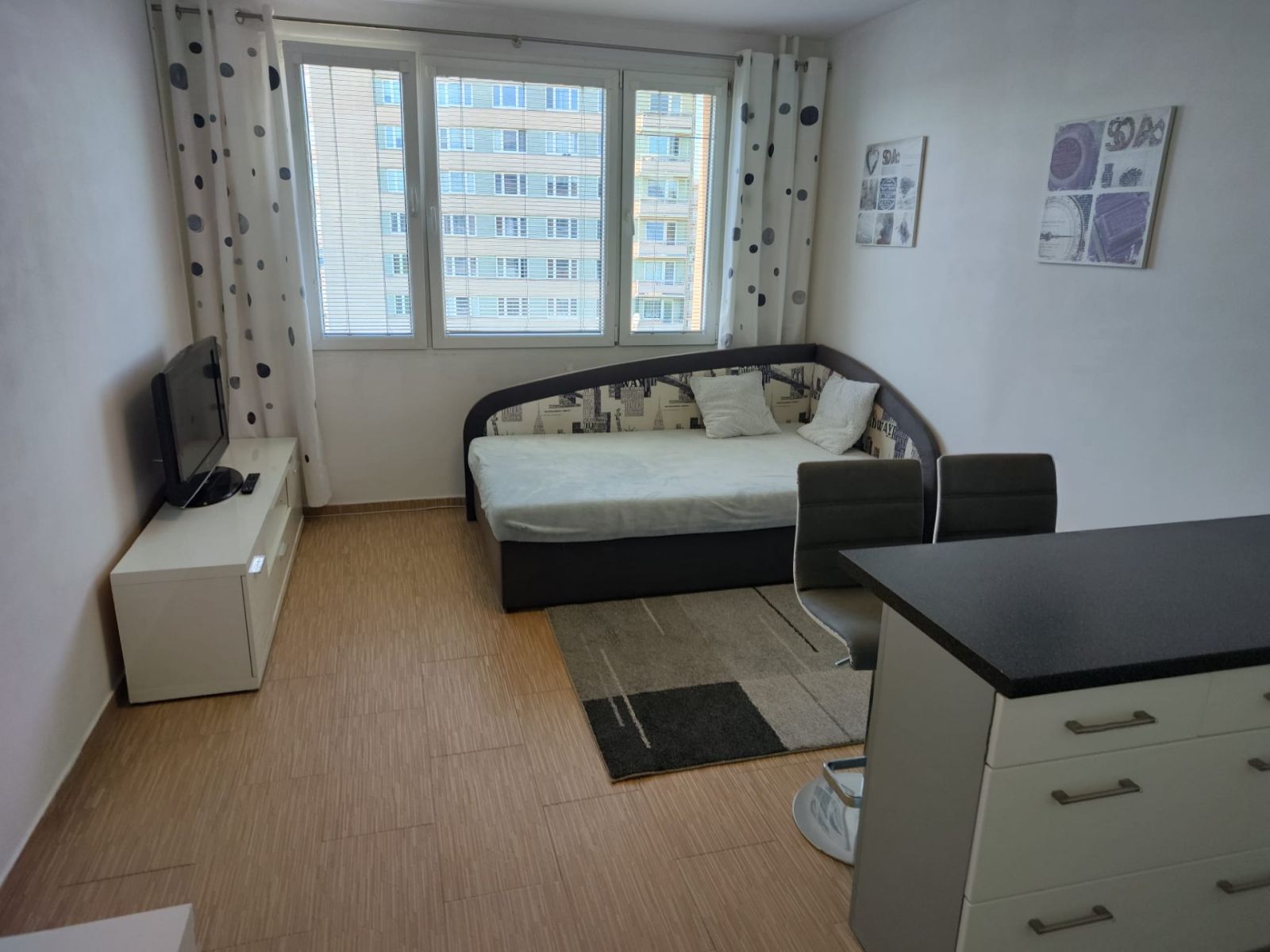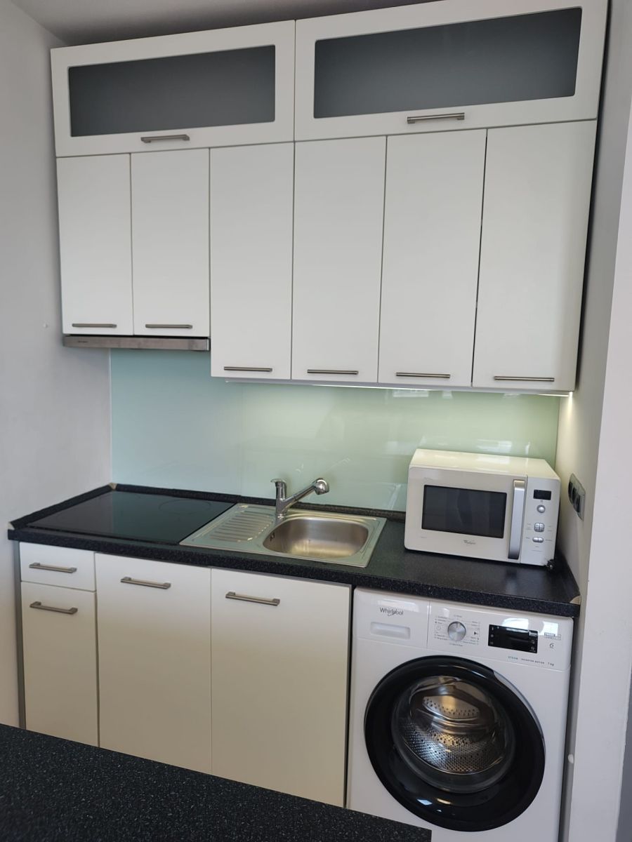 I offer a cozy, modernly furnished studio apartment for rent, located in a panel building right next to a forest park. The property is in very good condition and fully equipped, ensuring comfortable living without the need for additional investment. The 32 m² apartment is situated on the 10th floor of a 12-story building, which also features two elevators—especially appreciated by those seeking comfort and practicality.