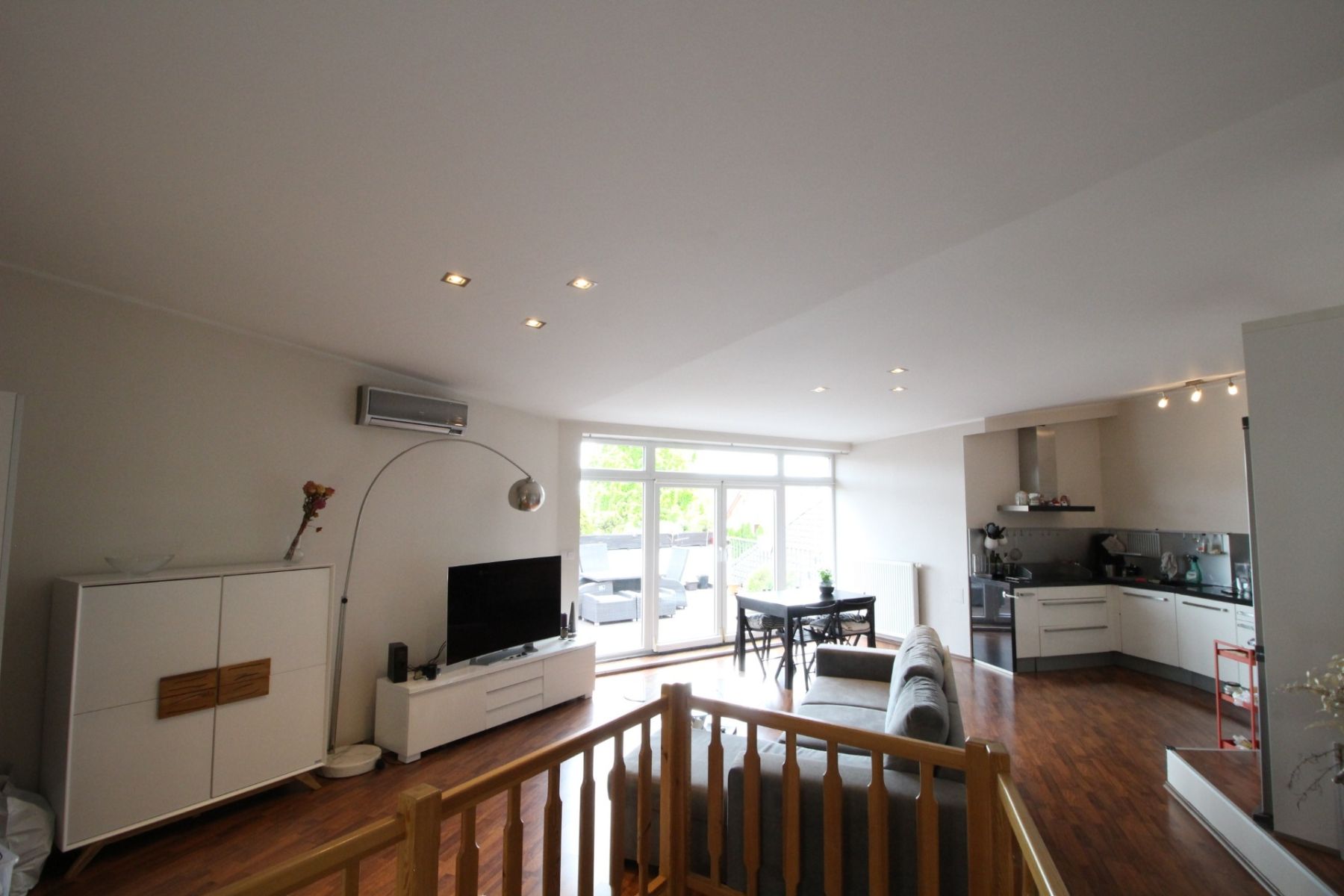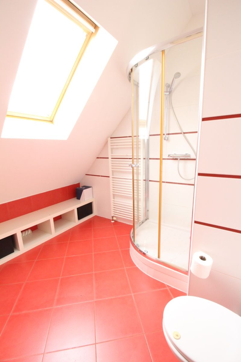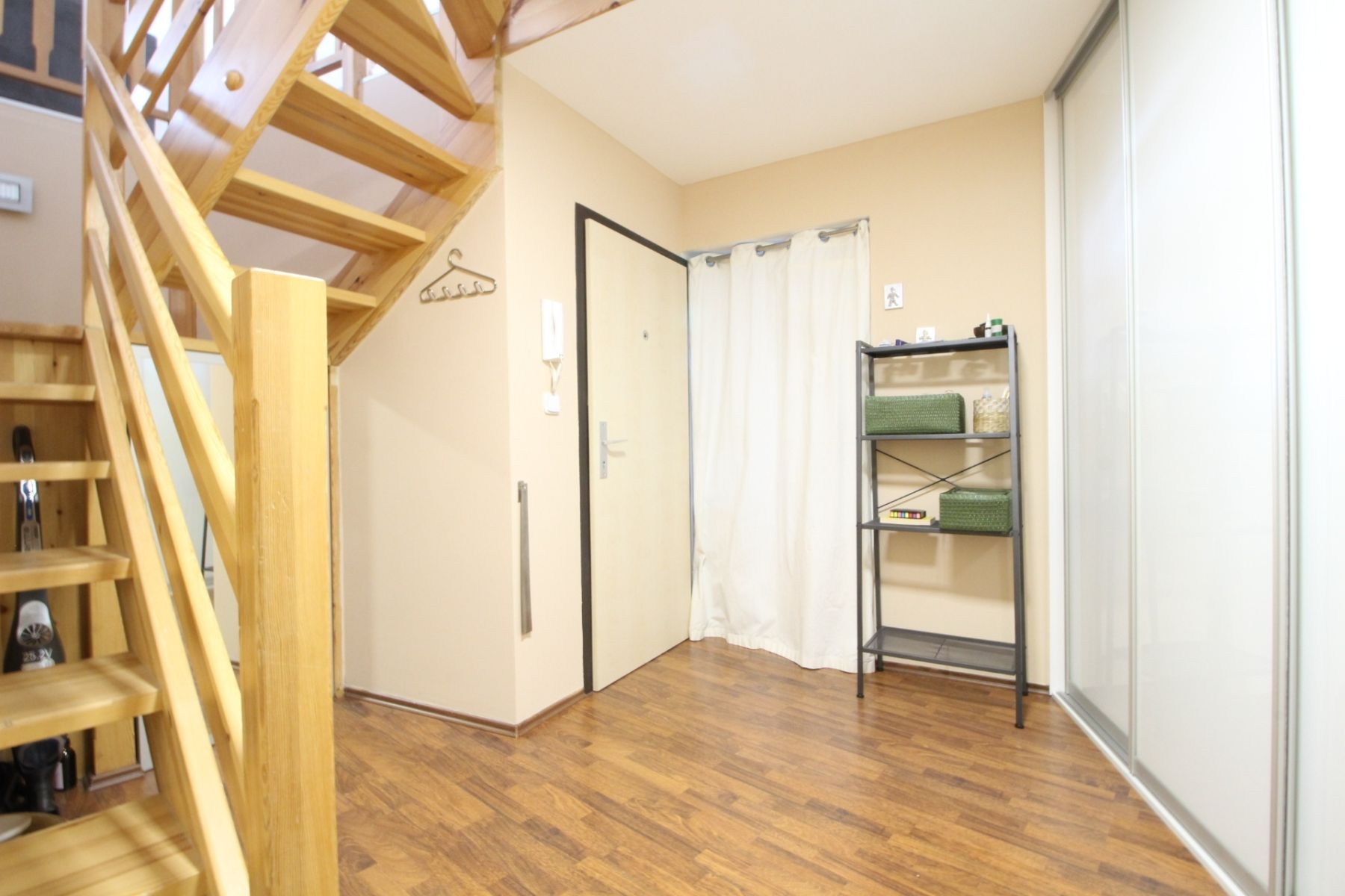 Tento byt se pronajímá kompletně zařízený a každá obytná místnost má klimatizaci. Kuchyň s obývacím pokojem se nachází v patře a disponuje kuchyňskou linkou s elektrickou varnou deskou, digestoří, vestavěnou elektrickou troubou a mikrovlnnou troubou, myčkou, lednicí s mrazákem a rychlovarnou konvicí. Obývací pokoj je plně připraven k užívání. Naleznete zde sedací soupravu, komodu s TV, lampu, jídelní stůl se židlemi, úložné prostory a jiné. Z obývací části se dostanete na prostornou terasu, na které se nachází posezení s výhledem do zeleně. Z obýváku se také dostanete do první ložnice, ze které je přístup do koupelny se sprchovým koutem a toaletou. Tato ložnice disponuje jednolůžkovou postelí s psacím stolem a úložnými prostory. Dále je z obýváku vstup do technické místnosti, kde je pračka se sušičkou a další toaleta. Hlavní ložnice se nachází v přízemí a disponuje dvoulůžkovou postelí, nočními stolky a úložnými prostory. Z hlavní ložnice je také přístup do samostatné koupelny, která disponuje vanou a toaletou. Ve vstupní chodbě se nachází prostorné vestavěné skříně a je zde vstup do oddělené šatny. Dále je zde vytvořen úložný prostor, který je z chodby oddělen závěsem. K bytu náleží menší sklep a možnost využití společné zahrady. Vybavení bytu zobrazené na fotografiích nemusí odpovídat skutečnému vybavení bytu.