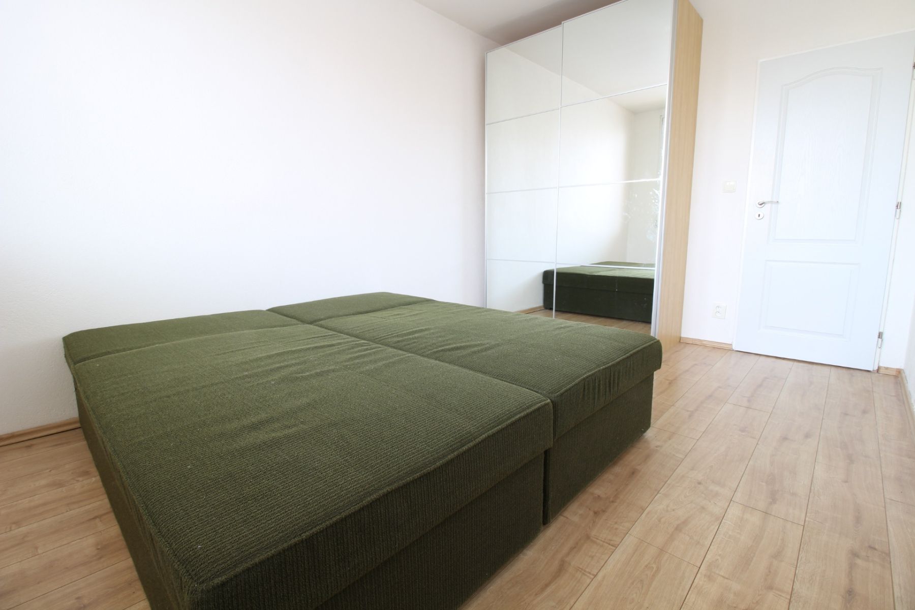 Dominantou tohoto bytu je kuchyně spojená s obývacím pokojem, ta je vybavena masivní dřevěnou kuchyňskou linkou, která obsahuje elektrickou troubu, plynový sporák s digestoří, mikrovlnnou troubu, myčku a lednici s mrazákem. Kromě toho v kuchyni najdete spoustu úložného prostoru, včetně vestavěné spižírny. V obývací části najdete pohovku, z pokoje se dostanete na balkon, kde si můžete vychutnat svůj čas na čerstvém vzduchu. Jedna z ložnic disponuje prostornou šatní skříní, zatímco druhá ložnice je nevybavená, čímž vám umožní vytvořit si prostor přesně podle svých představ. V chodbě bytu se nachází vestavěná šatní skříň a komora, kterou lze využít jako šatnu. Koupelna je vybavena vanou a umyvadlem, zatímco toaleta je umístěna odděleně pro vaše pohodlí.