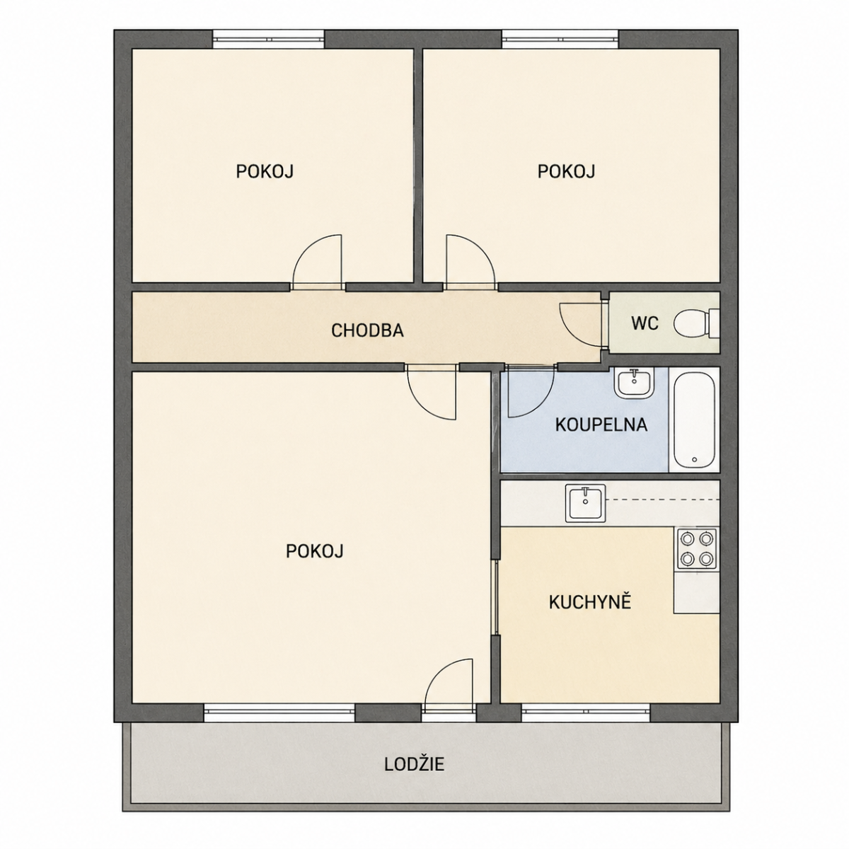 * 3 samostatné pokoje