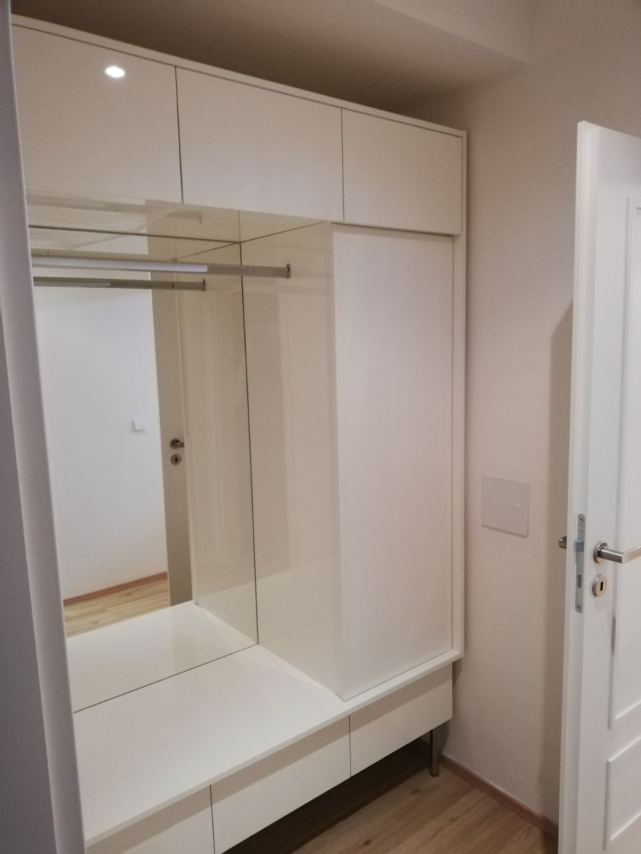 Interiér tvoří vstupní chodba s vestavnou skříní,1 pokoj + KK, koupelna se sprchovým koutem a s WC. K dispozici je samostatná sklepní kóje.