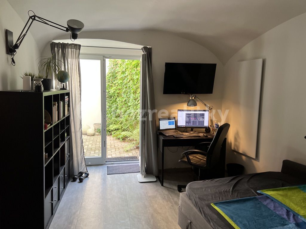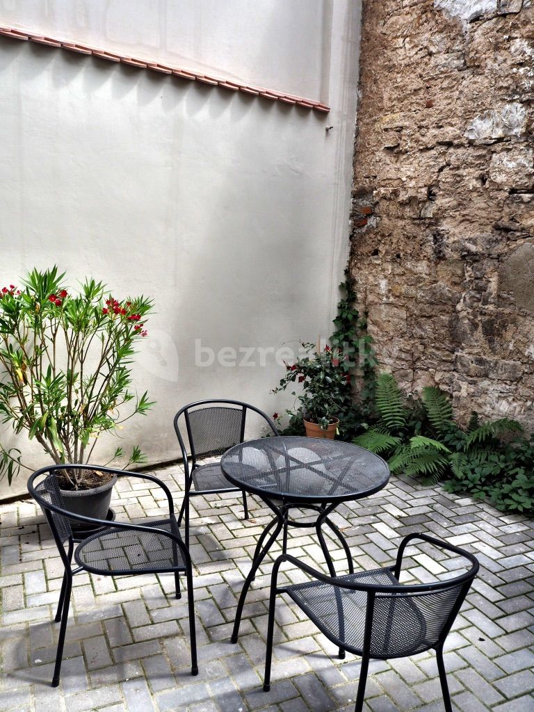 We offer a long-term rent of a renovated 1+kk apartment on the ground floor of the historic KUFR building, located directly on Mariánské náměstí. The apartment faces a quiet inner courtyard and features a large French window and a private terrace – ideal for morning coffee or working outside.