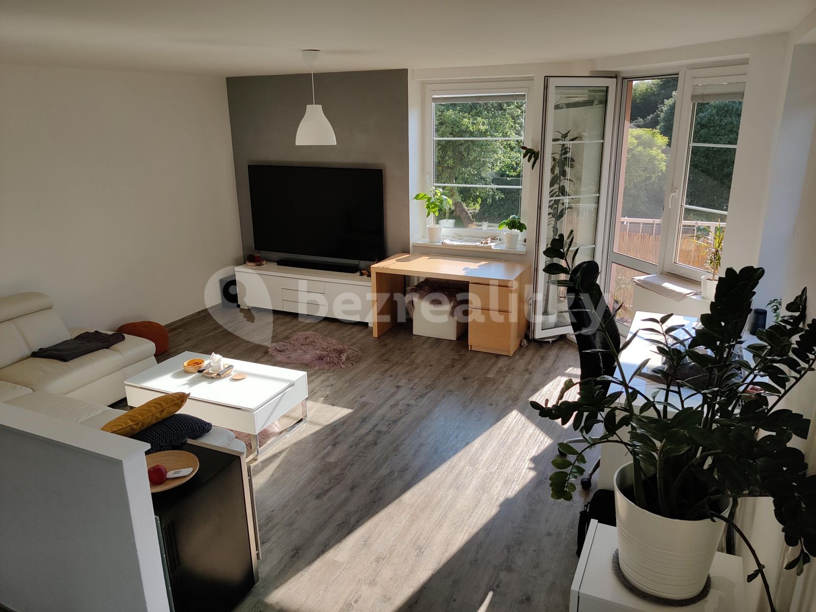 Byt je kompletně vybavený kromě (sušička, kancelářská židle, druhý starší prac. stůl, TV, sedačka, balkonový nábytek).