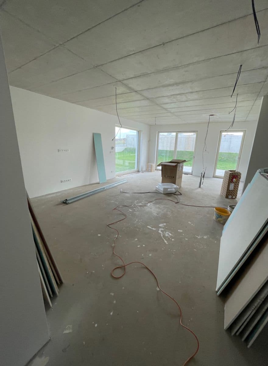 Bytová jednotka 5+KK se nachází v rodinném domě. V přízemí se nachází zádveří, obývací pokoj s kuchyňským koutem a WC a pracovna. V prvním patře jsou tři ložnice a dvě koupelny. Celková plocha pozemku je 500m2. K jednotce náleží samostatně stojící garáž pro jeden automobil a jedno venkovní parkovací stání. Dům se prodává ve stavu "shell&core" tedy pred dokončením finálních povrchů - tzn. bez podlahy, obkladů, koupelen a kuchyňe. Nový majitel si dokončí dle vlastních představ.