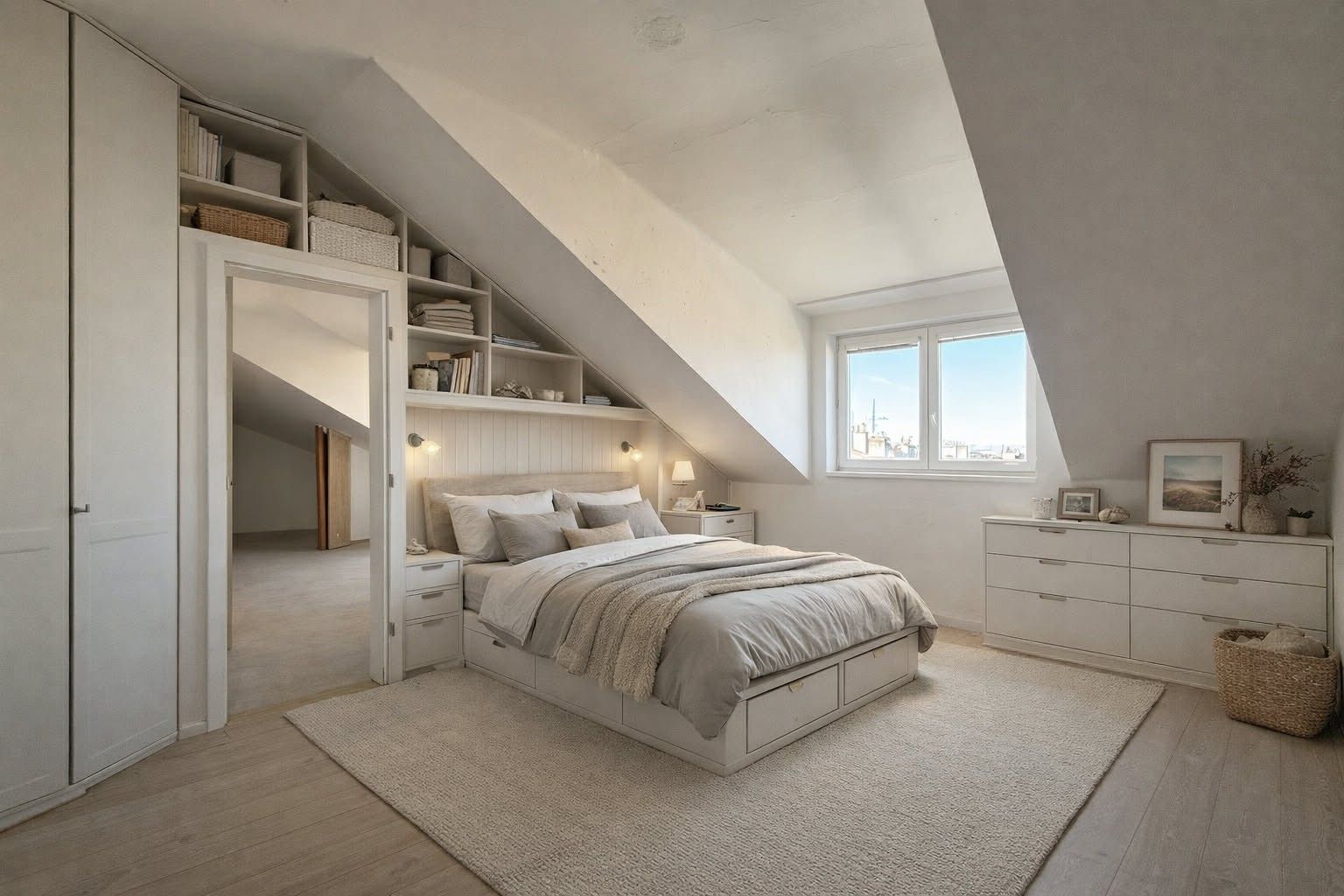 Jeseniova, Prague - ŽižkovLift • Cellar 3.4 m²Půdorys jednotky v 7. podlaží zahrnuje prostorný obývací pokoj s přípravou na kuchyňský kout, ložnici, koupelnu se sprchovým koutem a toaletou, samostatnou toaletu a vstupní chodbu. K jednotce náleží také dvě sklepní kóje o celkové výměře 3,4 m². Jednotka je ve stavu před rekonstrukcí, což vám dává možnost vytvořit si interiér přesně podle vlastních představ (fotografie jsou vizualizace možného řešení). Při vstupu do domu vás přivítají luxusně zrekonstruované společné prostory s mramorovými obklady, designovým osvětlením z broušeného skla a novým proskleným výtahem. Součástí domu je také upravený vnitroblok s lavičkami a vyvýšenými záhony – ideální místo pro odpočinek nebo grilování s přáteli.