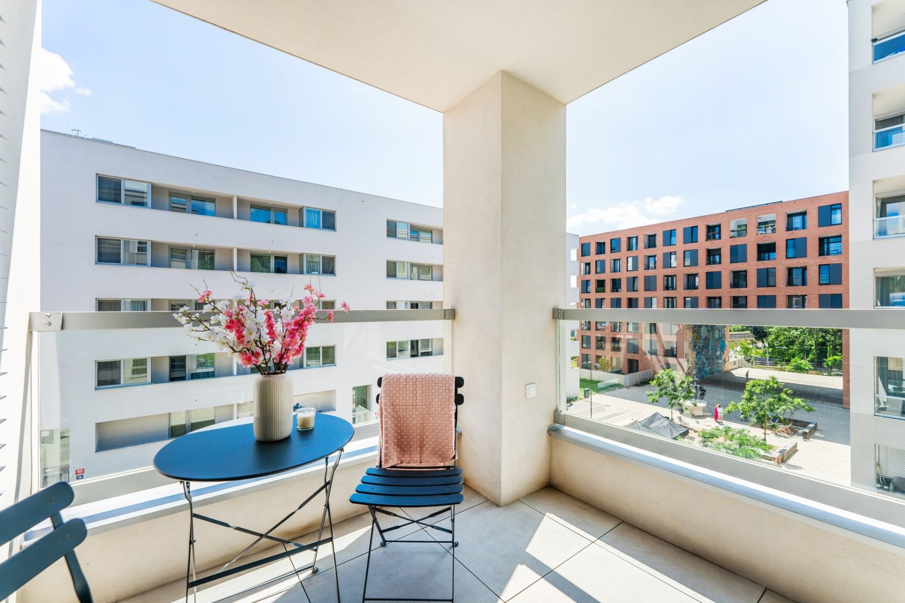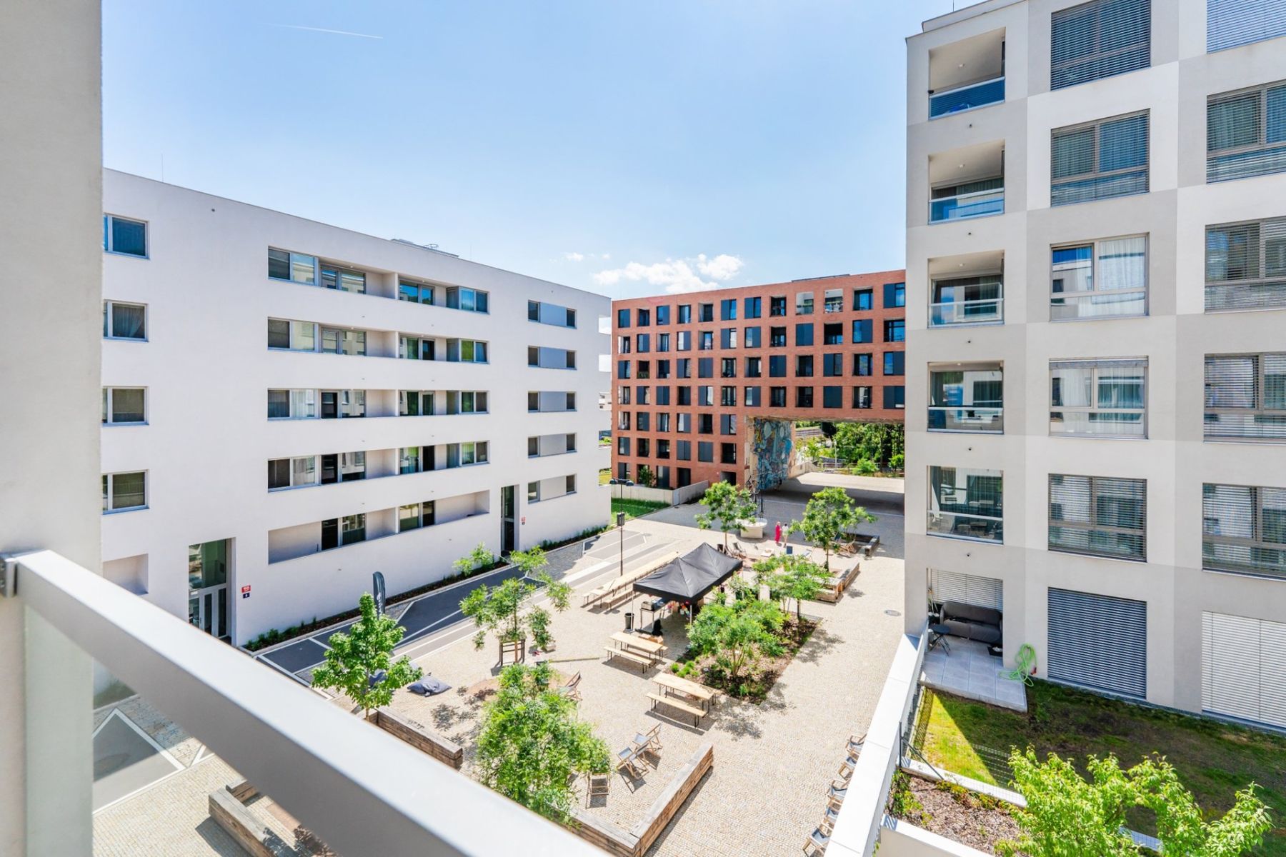 The residence is located in the strategic location of Vysočany in Prague 9, which has been undergoing modernization in recent years and is becoming one of the most sought-after neighborhoods. In the vicinity you will find all civic amenities including restaurants and cafes, shopping centers Fénix and Harfa, gym and medical facilities. The surrounding area offers an ideal combination of nature and the city life. There are green parks, hiking trails and cycle paths.